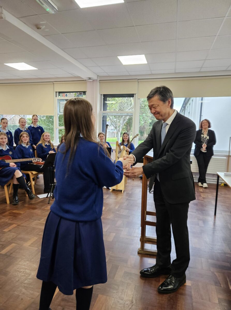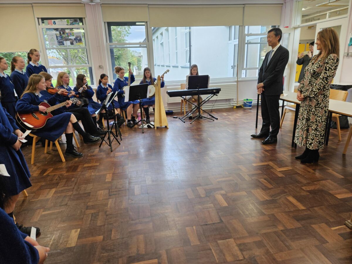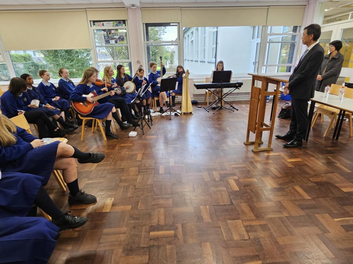 Today we hosted Japanese ambassador, Mr Maruyama. Some students played Irish music to welcome him and we asked some questions. At the end we made an origami box together.