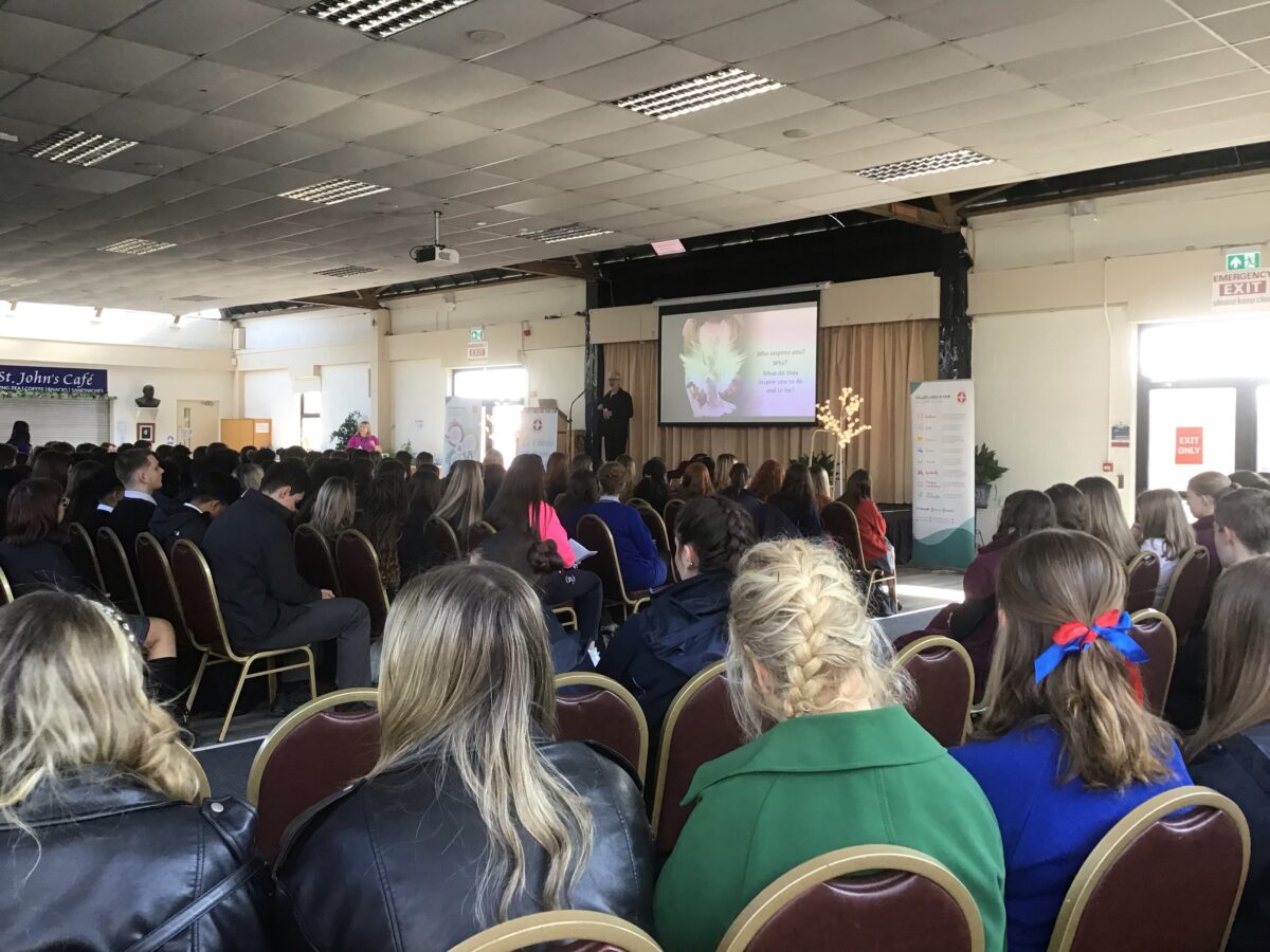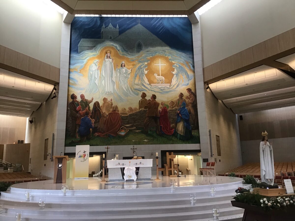 The day began with a short talk regarding gratitude, kindness and a reflection on those who inspire us and why. We had a fun sing along as a community of Le Cheile schools and we were all asked, regardless of our faith to take part in some prayers and reflection periods. I found the first talk very interesting and also rather meaningful. This man told us about his dog who meant a lot to him and also inspired him. This dog eventually got cancer and passed away not long after but because of this the owner decided to form an organisation for other dog owners in his local and national community. It may seem confusing to why this was brought up, however I found it truly heartwarming. At this point he asked us certain questions and allowed us the time to discuss with the other students from different schools around us. While it was at first difficult to talk to others I didn’t know, I was able to discuss and talk with people from all parts of Ireland and even different countries. This was really interesting and also was a learning experience for me. Not long after this talk, and introduction was presented to us regarding the day ahead and the activities we would take part in. Each of us had a name tag with a particular colour, which would later be used to separate us into groups along with the other students. I had the colour red, and the first activity I took part in was a talk about the history of Knock and the apparition. However, before all these activities took place we all gathered in the basillica for a short mass to reflect on this occassion.